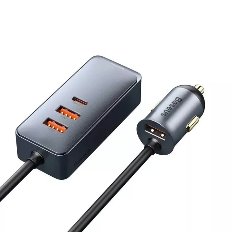 شارژر فندکی 120W فست و PD چهار پورت Baseus مدل CCBT-B0G به همراه کابل متصل - خاکستری